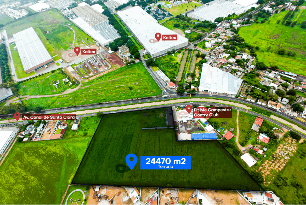 En venta un terreno con uso de suelo residencial, comercial o Industrial en la Col. Espíritu Santo, San Juan del Río, Querétaro. Este terreno cuenta con una excelente ubicación y una superficie de 24,470.11 m2, ideal para desarrollar proyectos habitacionales, comerciales o Industriales. Además ya dispone de conexión de servicios básicos como drenaje, luz y agua corriente, lo cual lo hace aún más atractivo para inversionistas en busca de oportunidades en el sector inmobiliario.